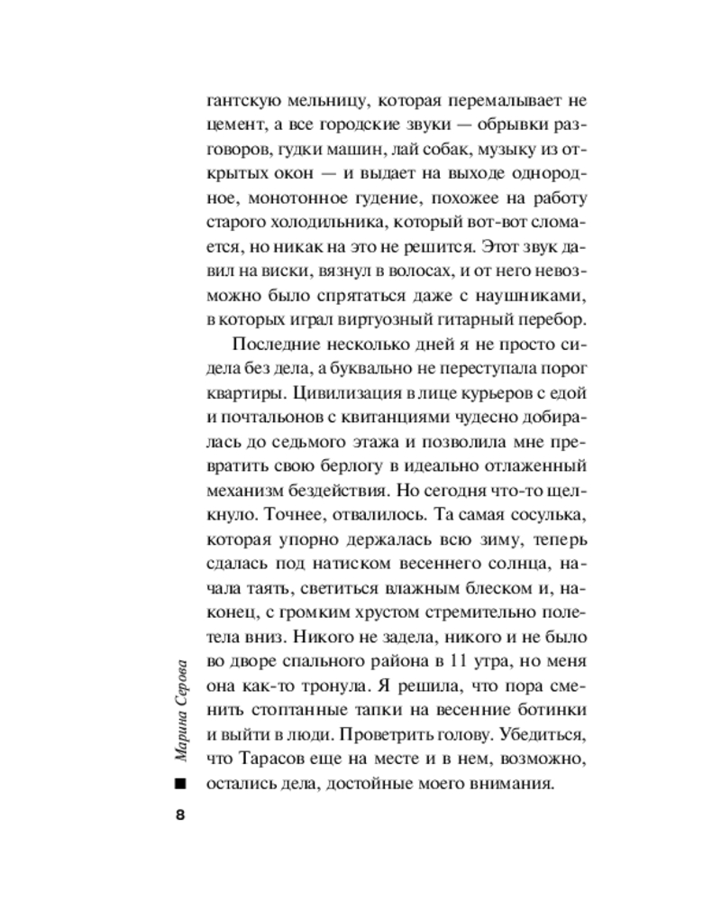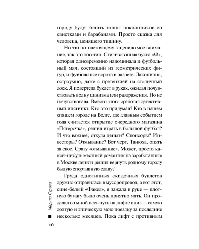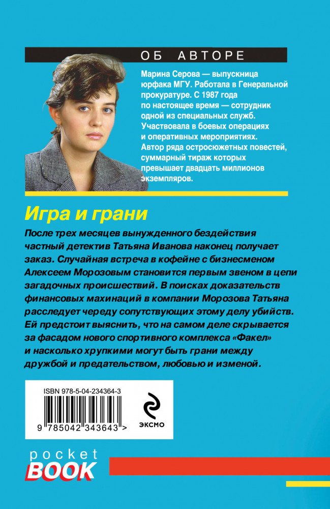 | Марина Сергеевна Серова — один из ведущих авторов серии современного русского детективного жанра (существует версия, что это коллектив авторов под общим руководством литературного агента Сергея Потапова). Согласно легенде, «выпускница юридического факультета МГУ, работала в Генеральной прокуратуре, сотрудница одной из спецслужб, участвовала в боевых операциях». Между тем написала 425 произведений размером порядка 200 страниц (и число их постоянно увеличивается). Часть произведений... |