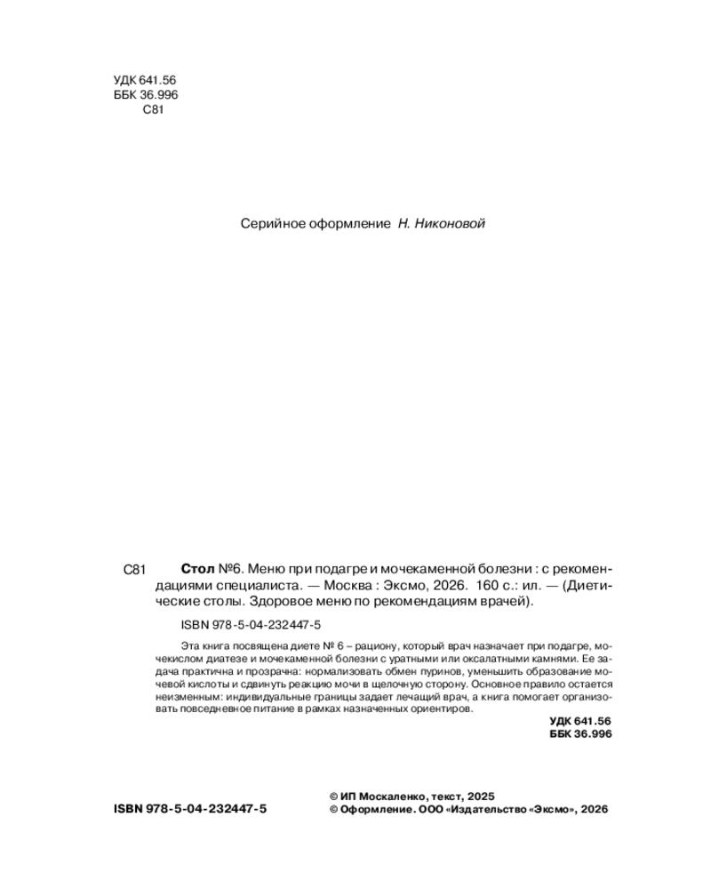 Стол №6. Меню при подагре и мочекаменной болезни. С рекомендациями специалиста-20% +31