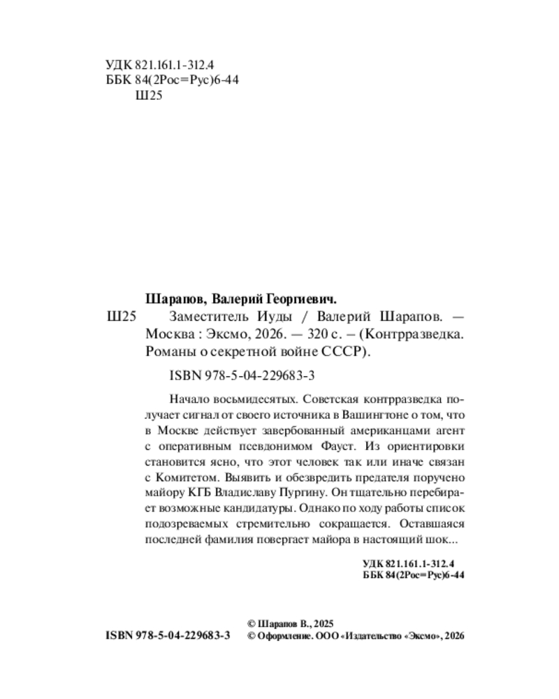 💳 Оплатить за товар можно при получении 🇰🇿 Есть бесплатная доставка по Казахстану от 1 дня 🎁 Копите бонусы с каждой покупки Серия: Контрразведка. Романы о секретной войне СССР (обложка) Начало восьмидесятых. Советская контрразведка получает сигнал от своего источника в Вашингтоне о том, что в Москве действует завербованный американцами агент с оперативным псевдонимом «Фауст». Из ориентировки становится ясно, что этот человек так или иначе связан с Комитетом. Выявить и обезвредить предателя поручено майору КГБ Владиславу Пургину. Он тщательно перебирает возможные кандидатуры. Однако по ходу работы список подозреваемых стремительно сокращается. Оставшаяся последней фамилия повергает майора в настоящий шок... |