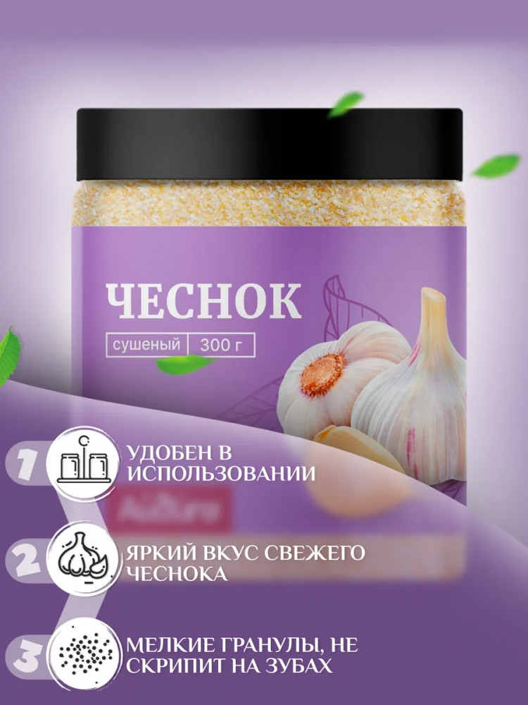 Сухой молотый чеснок — это не только приятный вкус и аромат, но и настоящая кладезь полезных веществ. Сушеный молотый чеснок — вегетарианский продукт без глютена.Благодаря уникальному составу специя помогает укрепить иммунную систему, поддерживает сердечно-сосудистую систему и способствует нормализации пищеварения. Натуральный чеснок известен своими противовирусными и антибактериальными свойствами, помогая бороться с простудными заболеваниями и укреплять организм. Также считается, что у чеснока есть свойство снижать уровень холестерина и артериального давления.