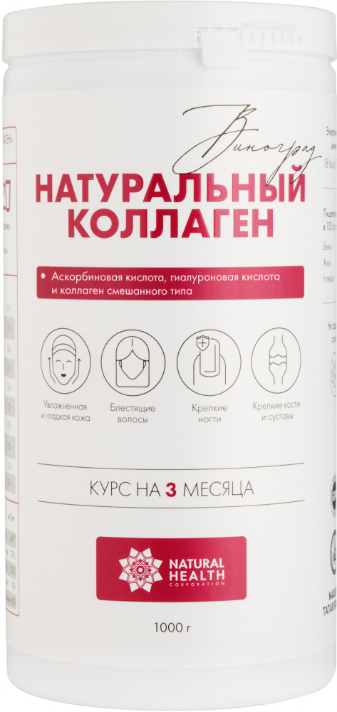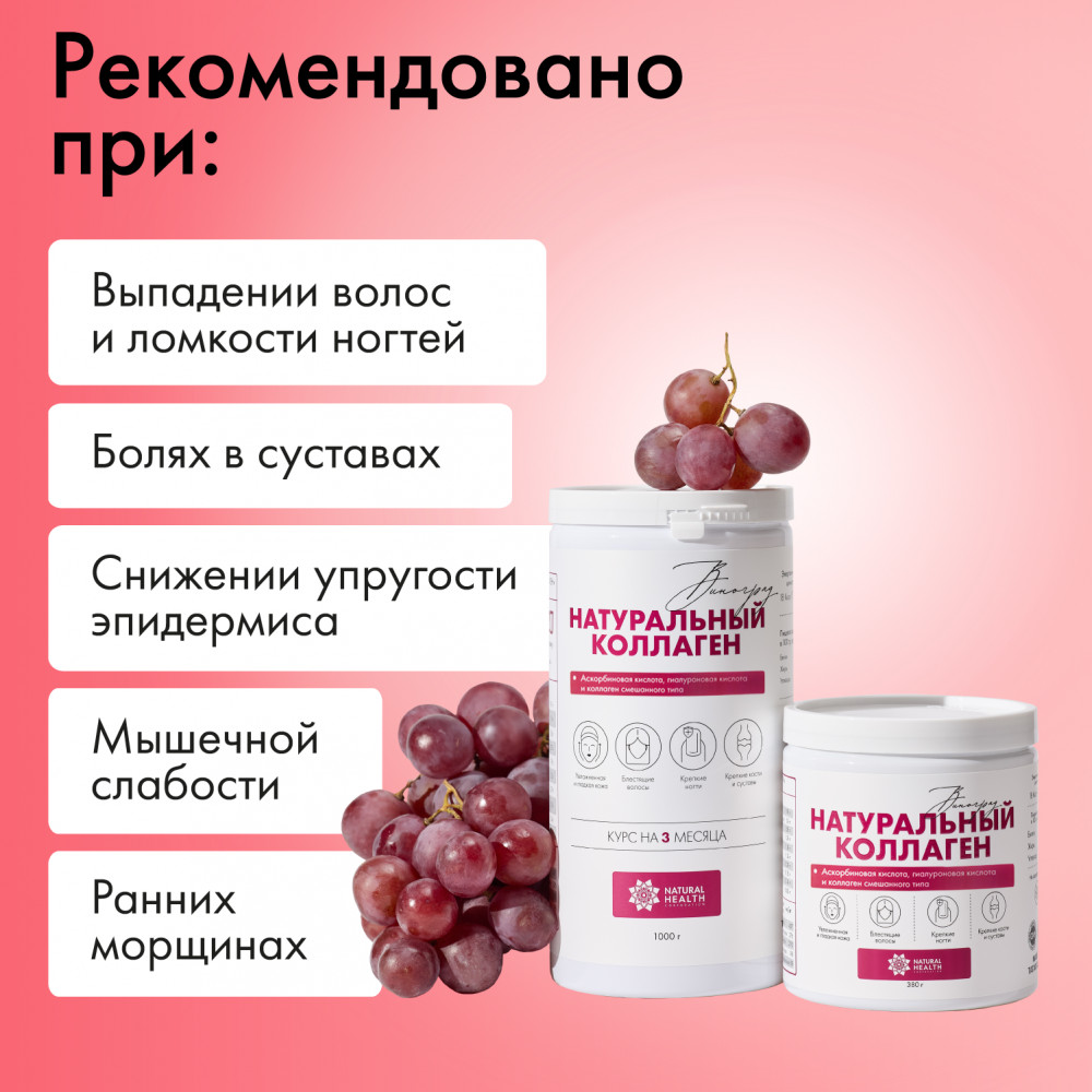 Natural Health Натуральный коллаген желе для суставов и связок 1 2 3 типа, для волос, со вкусом винограда, 1000 грамм, Natural Health.