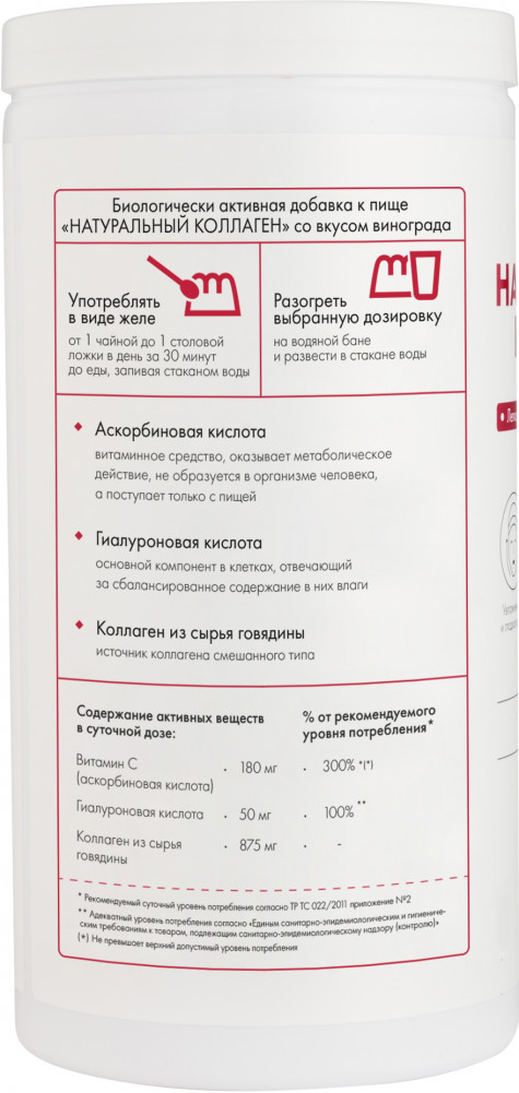 Натуральный коллаген желе для суставов и связок 1 2 3 типа, для волос, со вкусом винограда, 1000 грамм, Natural Health. | Natural Health