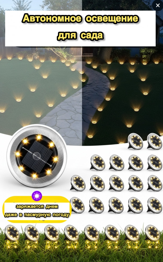 💳 Оплатить за товар можно при получении 🇰🇿 Есть бесплатная доставка по Казахстану от 1 дня 🎁 Копите бонусы с каждой покупки Ищете надежный светильник садовый на солнечной батарее уличный, который не боится дождя и работает без подзарядки? Перед вами идеальное решение. Это полностью автономный фонарик садовый на солнечной батарее: днем накапливает энергию солнца, ночью мягко освещает дорожки, клумбы или входную группу. Садовые светильники на солнечных батареях отлично подойдут для освещение садовых дорожек, клумб, цветников, декорирование различных зон. |