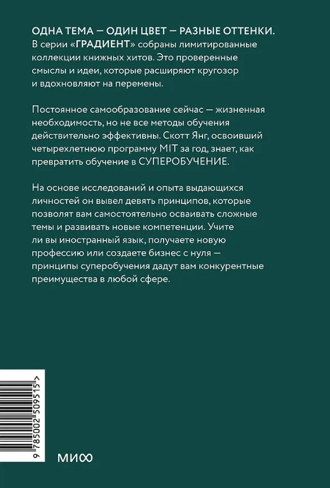 💳 Оплатить за товар можно при получении 🇰🇿 Есть бесплатная доставка по Казахстану от 1 дня 🎁 Копите бонусы с каждой покупки Серия: Лучшие книги для самообразования Внутри — 9 принципов, благодаря которым можно значительно ускорить процесс познания. Чего угодно. Актуальная, отлично структурированная, практичная книга про развитие hard skills в эпоху, когда нужно постоянно учиться новому. |