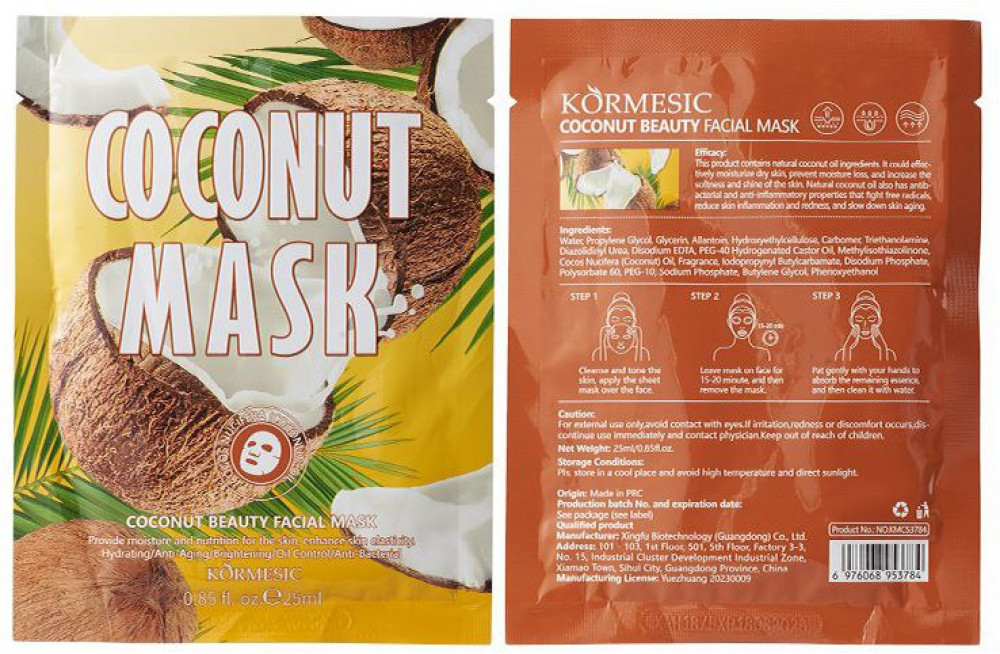 Kormesic Набор тканевых масок для лица «Кокос и Авокадо»