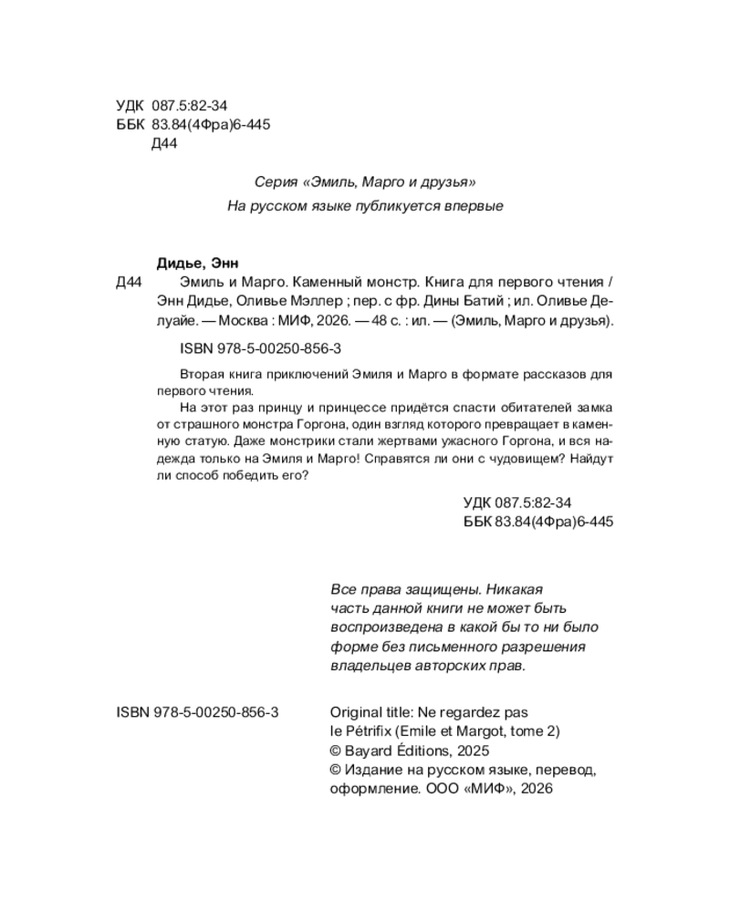 Эмиль и Марго. Каменный монстр. Книга для первого чтенияОливье Делуайе, Энн Дидье, Оливье Мэллер -40% +26