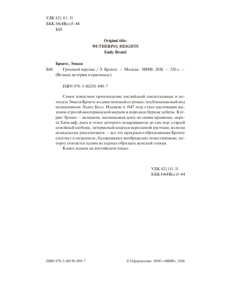 💳 Оплатить за товар можно при получении 🇰🇿 Есть бесплатная доставка по Казахстану от 1 дня 🎁 Копите бонусы с каждой покупки Серия: Вечные истории в оригинале «Грозовой перевал» — это история о любви на грани одержимости и мести, которая ломает судьбы двух поколений. Единственный роман английской писательницы и поэтессы Эмили Бронте. Книга стала настоящим вызовом строгой викторианской морали и породила бурные дебаты. Издание на английском языке. |