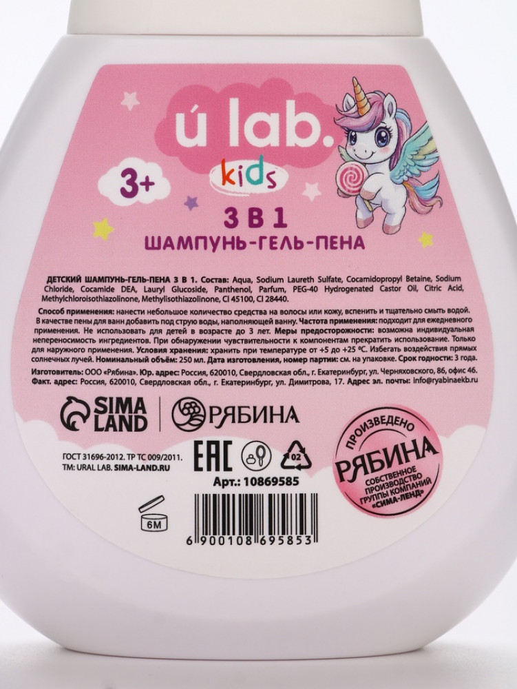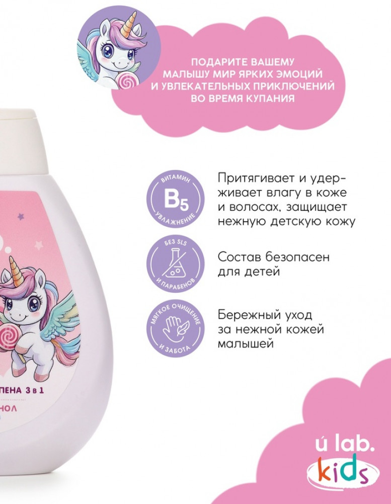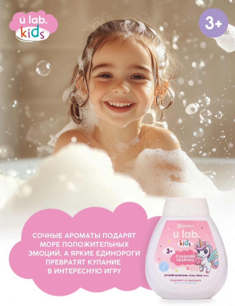 Ural lab Детский шампунь-гель-пена 3 в 1, аромат «Сладкий леденец»