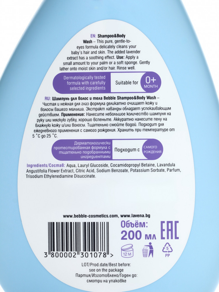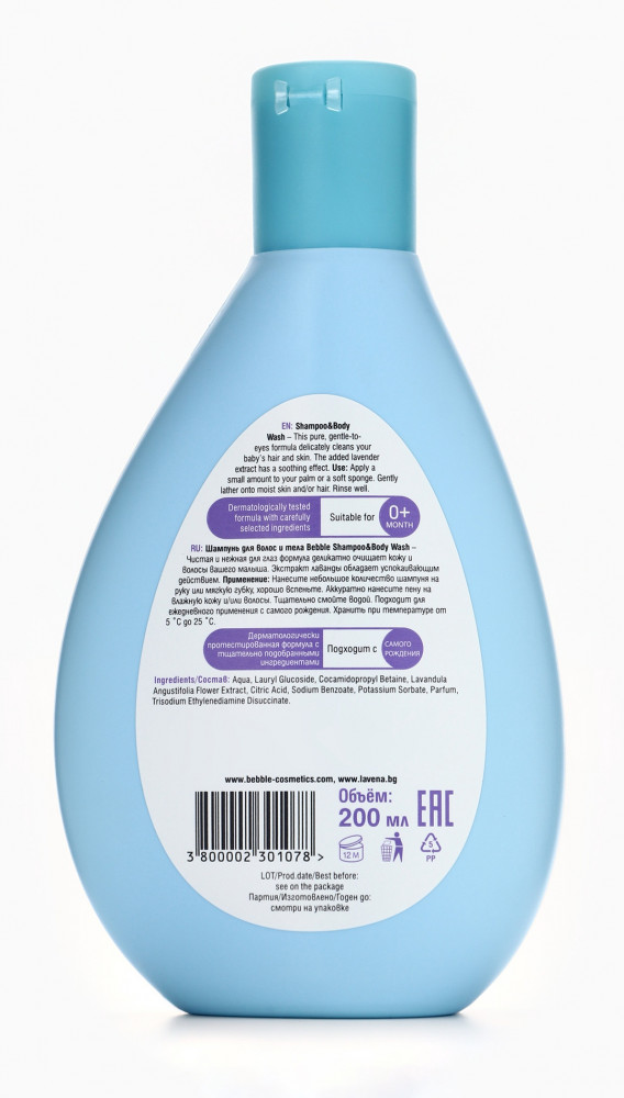 Bebble Шампунь для волос и тела детский с экстрактом лаванды