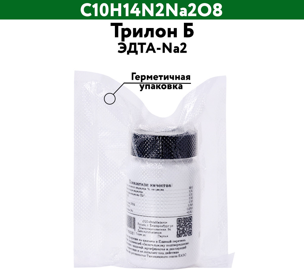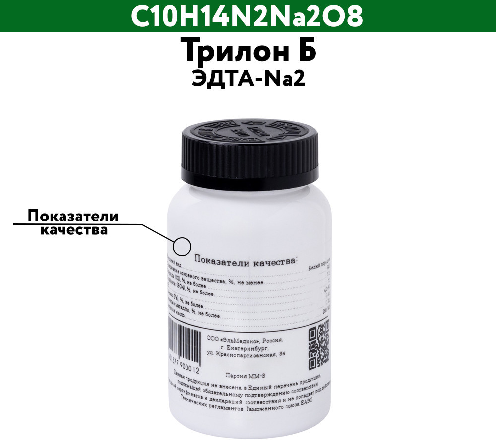 💳 Оплатить за товар можно при получении 🇰🇿 Есть бесплатная доставка по Казахстану от 1 дня 🎁 Копите бонусы с каждой покупки Трилон Б — динатриевая соль этилендиаминтетрауксусной кислоты, EDTA-Na2, ЭДТА-Na2. Представляет собой кристаллический порошок белого цвета. |