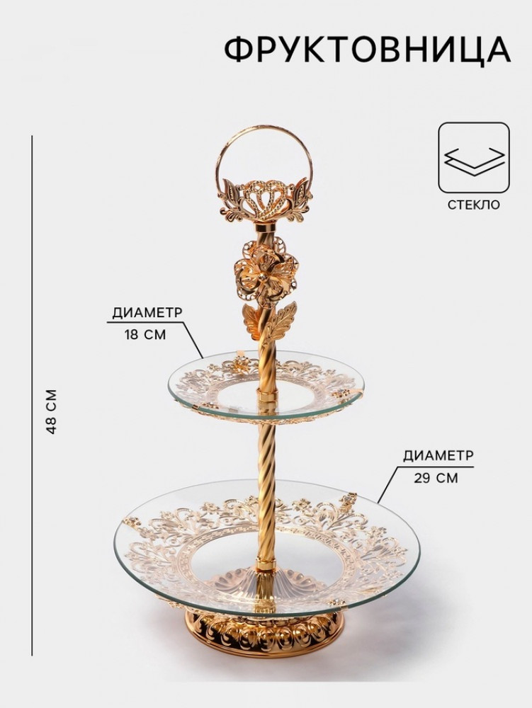 💳 Оплатить за товар можно при получении 🇰🇿 Есть бесплатная доставка по Казахстану от 1 дня 🎁 Копите бонусы с каждой покупки Этажерка-фруктовница «Расцвет» — это двухъярусная стеклянная полка, предназначенная для хранения и красивой подачи фруктов, конфет и десертов. Яркие цвета и блестящий узор делают эту фруктовницу привлекательной деталью интерьера. Прочная металлическая стойка и плоская ножка обеспечивают устойчивость конструкции. |