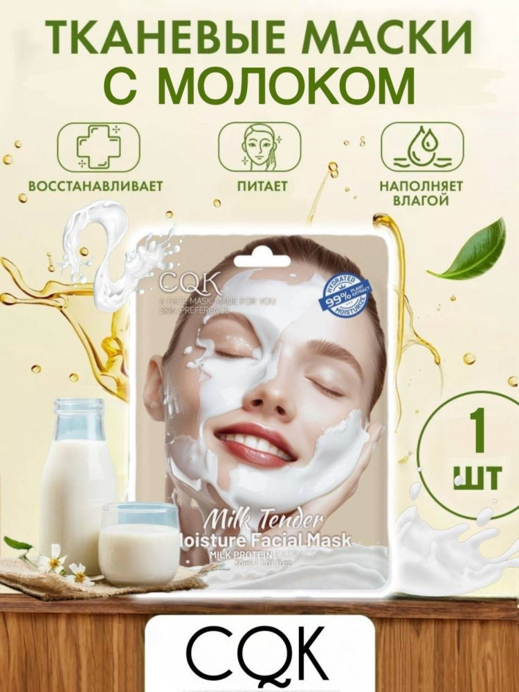 CQK Маска для лица тканевая с экстрактом молочных протеинов «Milk Tender Moisture Facial Mask»