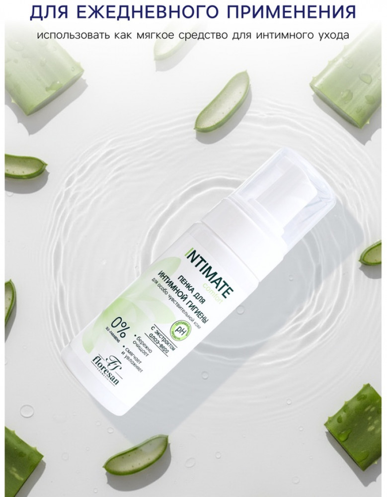 Floresan Пенка для интимной гигиены для чувствительной кожи с экстрактом алоэ вера