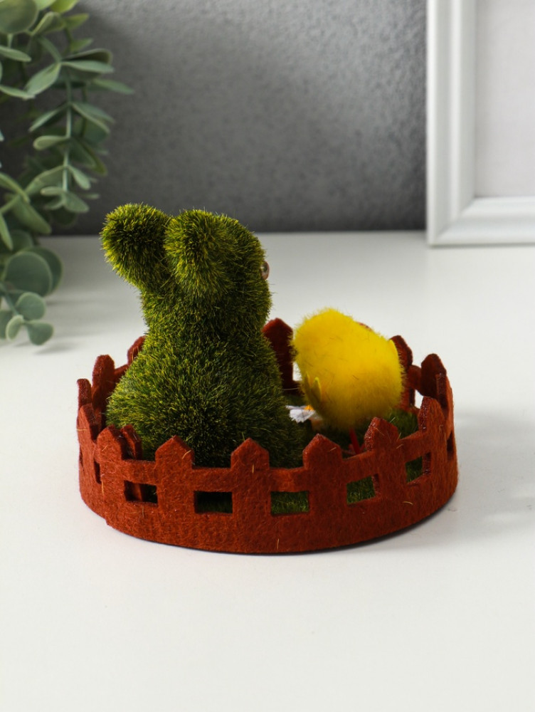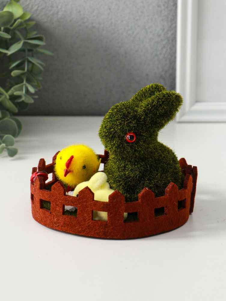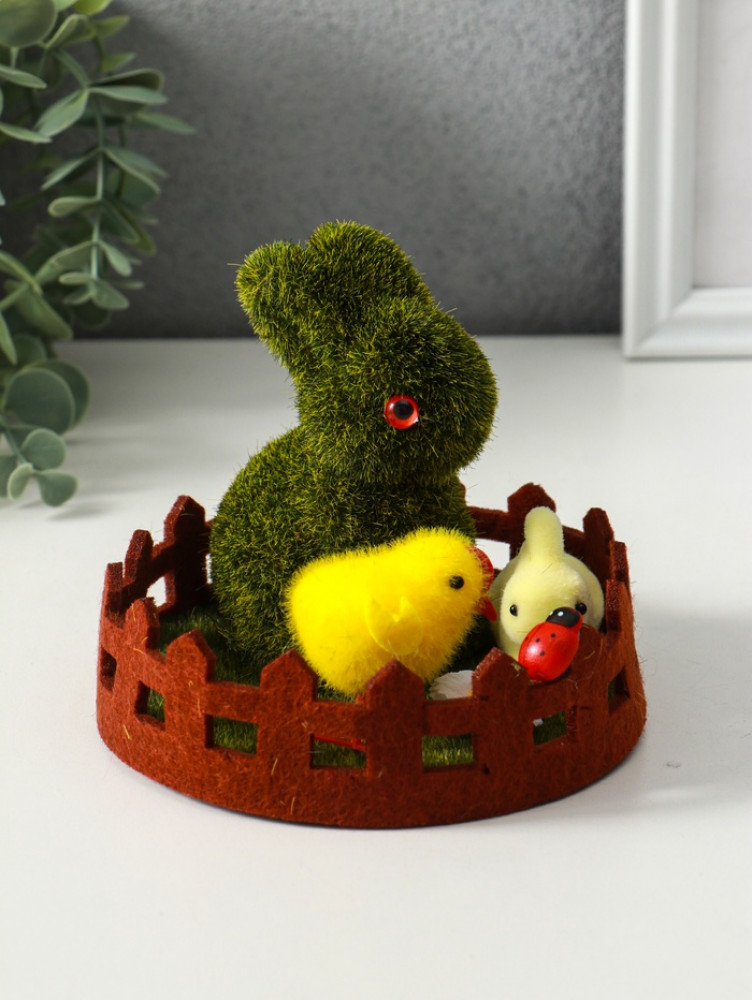 Фигурка пасхальная «Зайчик с цыплятами на лужайке с забором»-40% +20