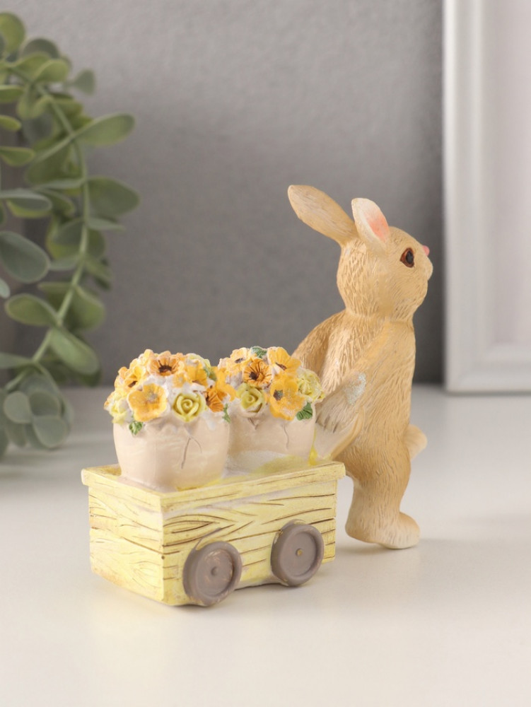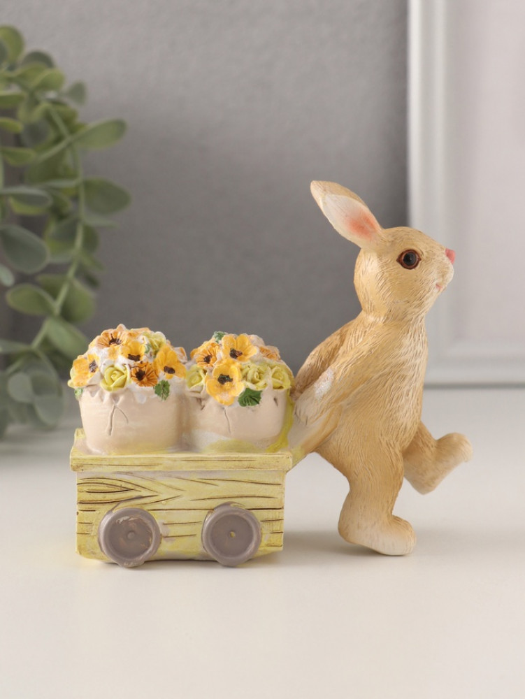 Фигурка «Зайчик везёт цветочные горшки на тележке»-35% +57