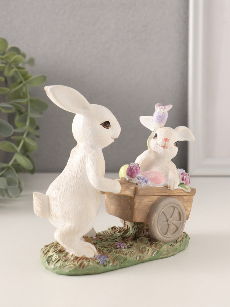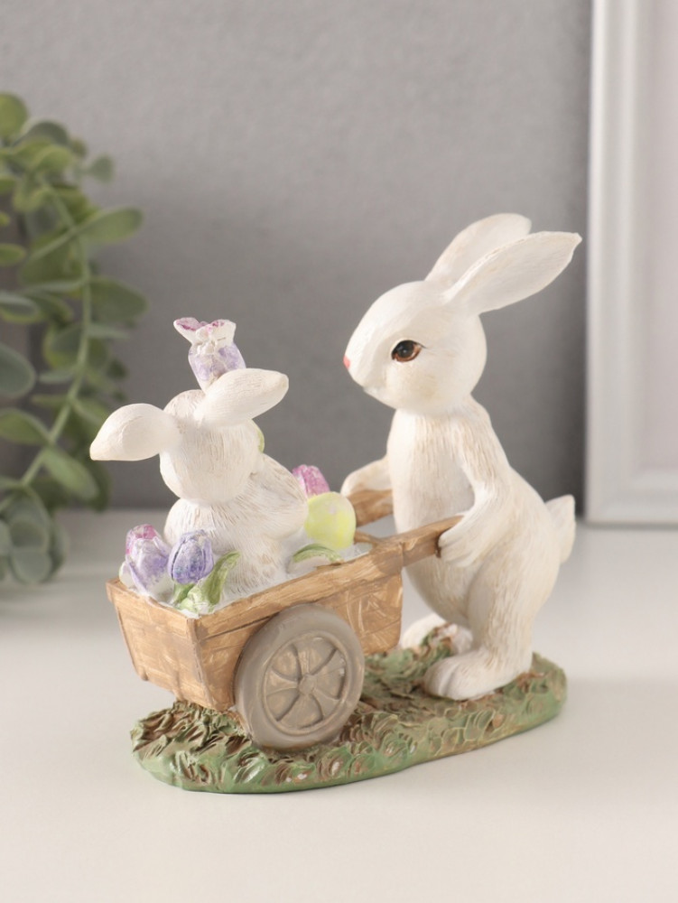 Фигурка «Кролик везет крольчонка в тележке с незабудками»-25% +94
