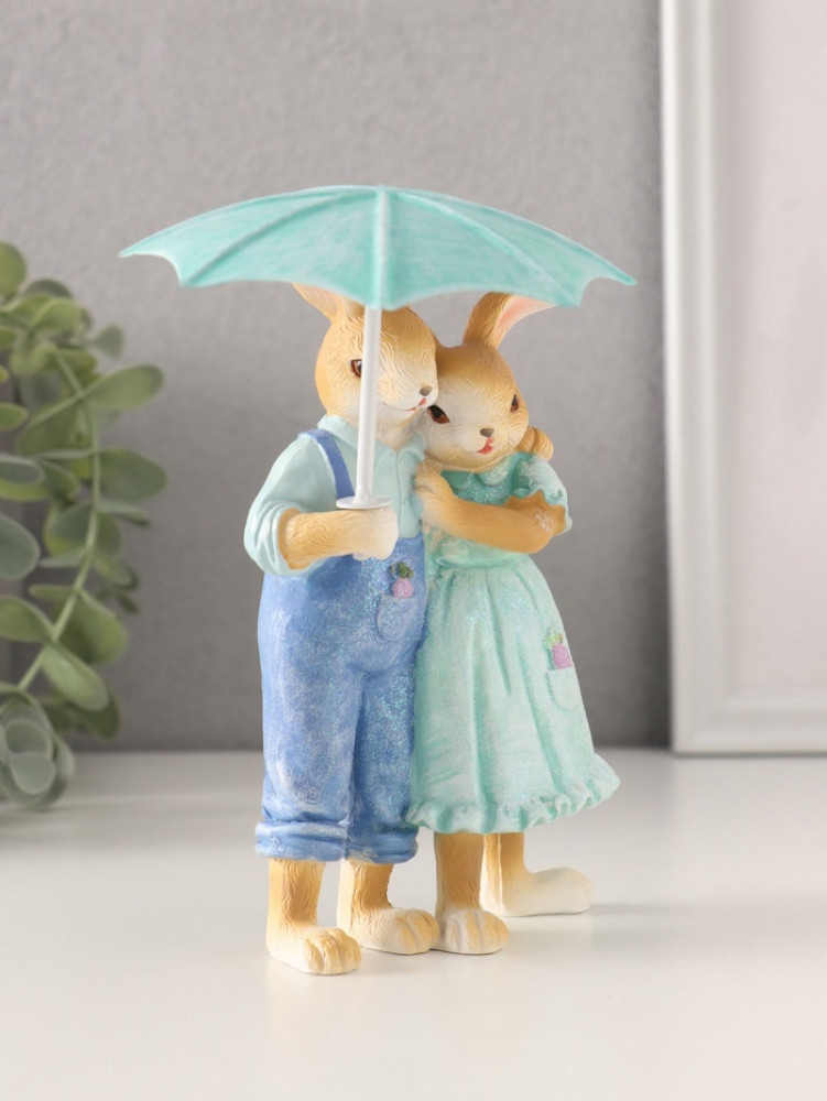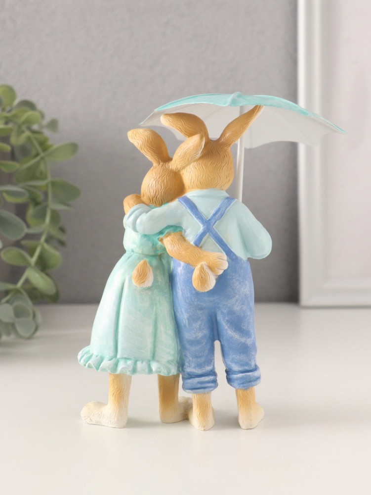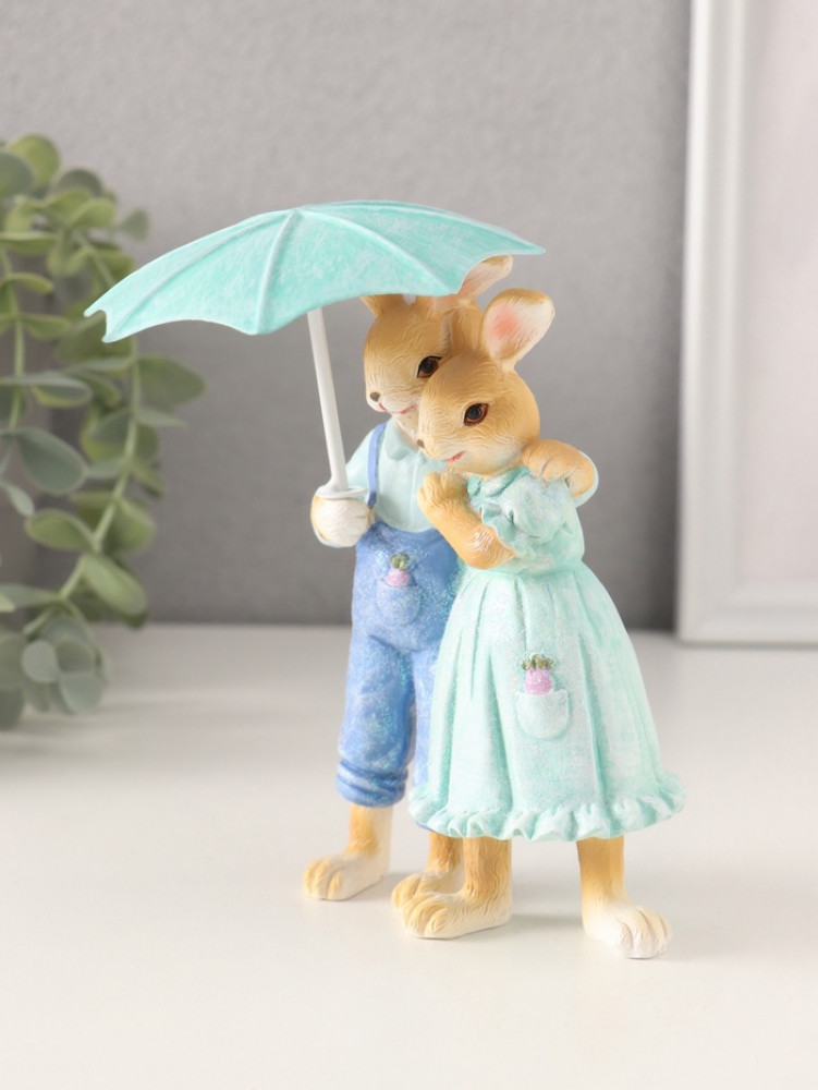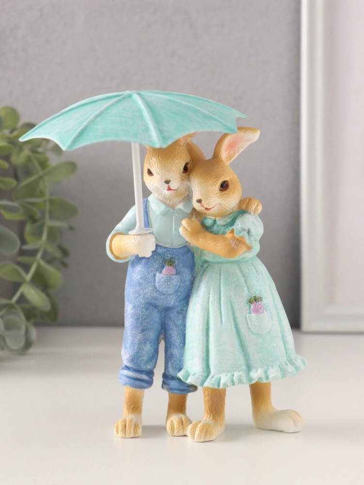 Фигурка «Парочка кроликов в голубых нарядах под зонтом»-25% +84