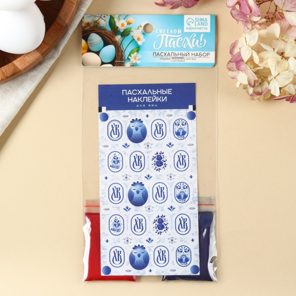 💳 Оплатить за товар можно при получении 🇰🇿 Есть бесплатная доставка по Казахстану от 1 дня 🎁 Копите бонусы с каждой покупки Набор для декора яиц на Пасху «Гжель» — это всё необходимое для создания красивых и оригинальных праздничных яиц в традиционном русском стиле. В комплект входят два красителя насыщенных оттенков — красный и синий, с помощью которых можно легко окрасить яйца в яркие контрастные цвета, а также набор декоративных наклеек с характерными узорами, вдохновлёнными художественной традицией гжельской росписи. |