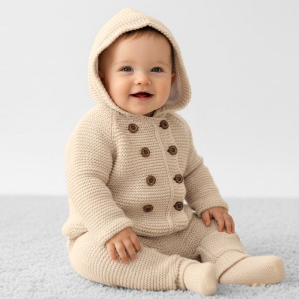 💳 Оплатить за товар можно при получении 🇰🇿 Есть бесплатная доставка по Казахстану от 1 дня 🎁 Копите бонусы с каждой покупки Вязаный костюм для малыша — стильный и тёплый комплект из мягкой пряжи, состоящий из кофты на пуговицах с капюшоном и штанишек. Уютная подкладка и аккуратная вязка обеспечивают комфорт и тепло в прохладную погоду. Идеален для прогулок и фотосессий. |