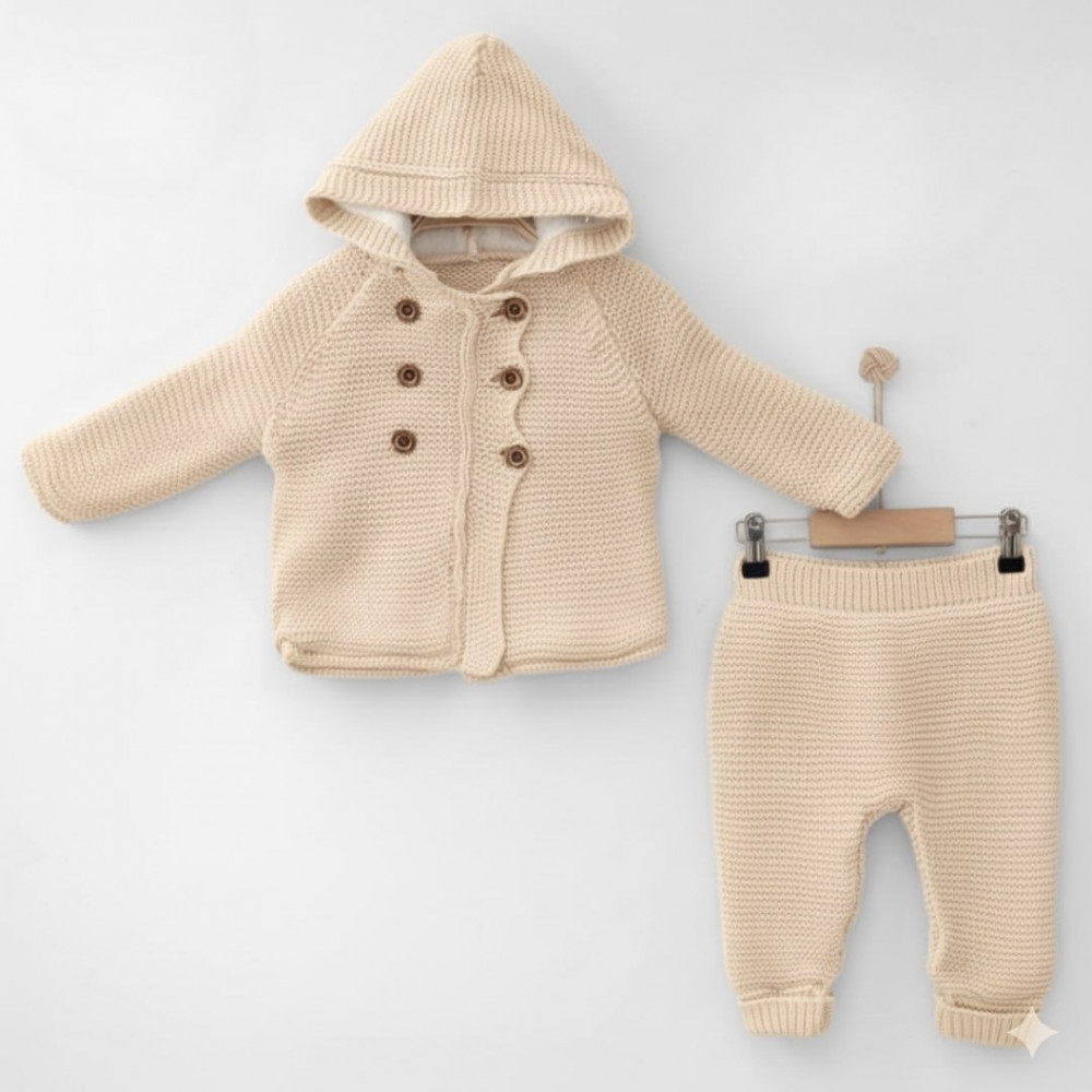 💳 Оплатить за товар можно при получении 🇰🇿 Есть бесплатная доставка по Казахстану от 1 дня 🎁 Копите бонусы с каждой покупки Вязаный костюм для малыша — стильный и тёплый комплект из мягкой пряжи, состоящий из кофты на пуговицах с капюшоном и штанишек. Уютная подкладка и аккуратная вязка обеспечивают комфорт и тепло в прохладную погоду. Идеален для прогулок и фотосессий. |
