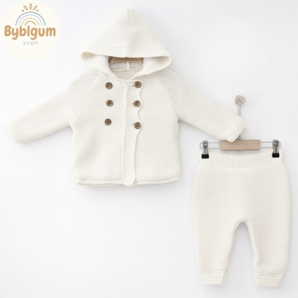 💳 Оплатить за товар можно при получении 🇰🇿 Есть бесплатная доставка по Казахстану от 1 дня 🎁 Копите бонусы с каждой покупки Вязаный костюм для малыша — стильный и тёплый комплект из мягкой пряжи, состоящий из кофты на пуговицах с капюшоном и штанишек. Уютная подкладка и аккуратная вязка обеспечивают комфорт и тепло в прохладную погоду. Идеален для прогулок и фотосессий. |