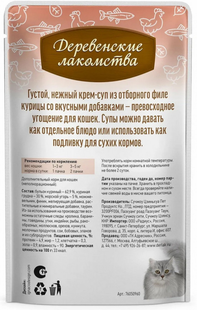 Деревенские лакомства Крем-суп для кошек «Морской угорь»
