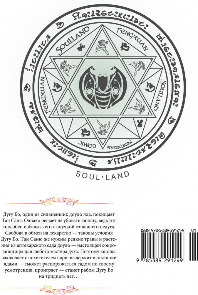 💳 Оплатить за товар можно при получении 🇰🇿 Есть бесплатная доставка по Казахстану от 1 дня 🎁 Копите бонусы с каждой покупки Серия: Графические романы Дугу Бо, один из сильнейших доуло яда, похищает Тан Саня, но решает не убивать юношу, ведь тот способен избавить его с внучкой от давнего недуга. Свобода в обмен на лекарство — таковы условия Дугу Бо. Тан Саню же нужны редкие травы и растения из аптекарского сада доуло — настоящей сокровищницы для любого мастера духа. Поэтому юноша заключает с похитителем пари: выдержит испытание ядами — сможет распоряжаться садом по своему усмотрению, проиграет — станет рабом Дугу Бо на тридцать лет... |