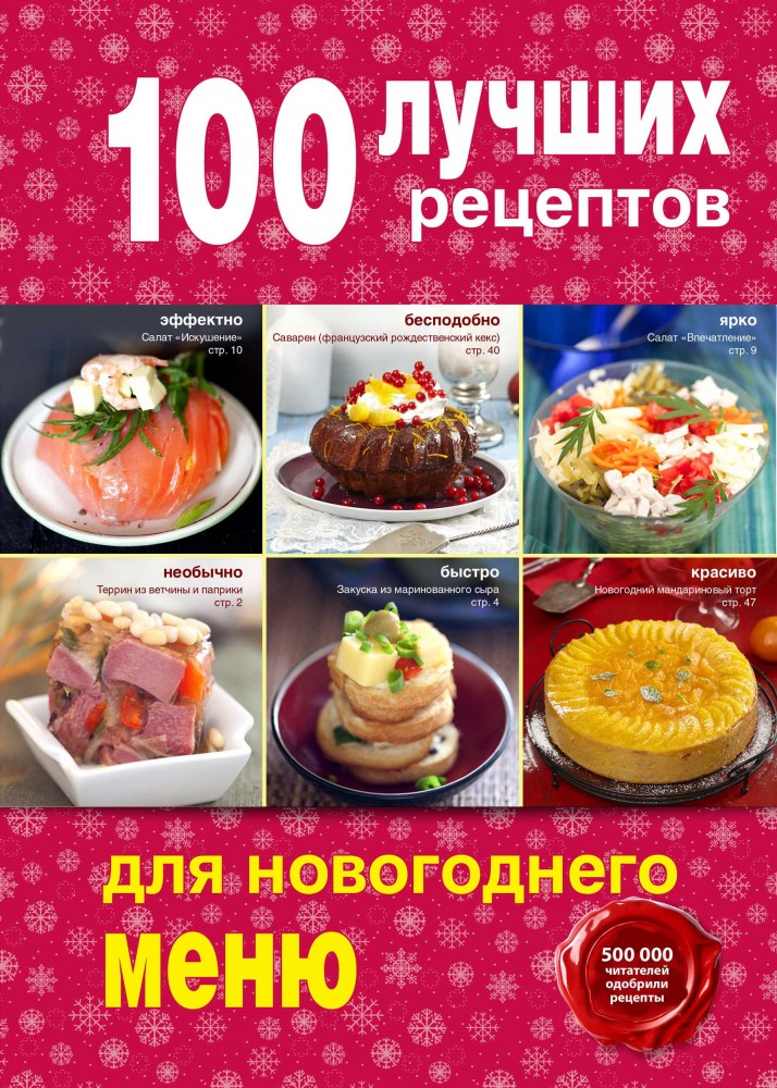 100 лучших рецептов для новогоднего менюВ данный момент этот товар отсутствует в продаже. Возможно, у нас найдется аналогичный или похожий товар здесь. Серия: Кулинария. 100 лучших рецептов Приготовления к самому долгожданному празднику года не обходится без кулинарных хлопот. Приготовить утку или запечь говядину, подать традиционный салат или попробовать новый вкус, на десерт торт или маленькие безе с заварным кремом. Вопросов, как вы видите, много, а времени перед подготовкой к празднику мало. |