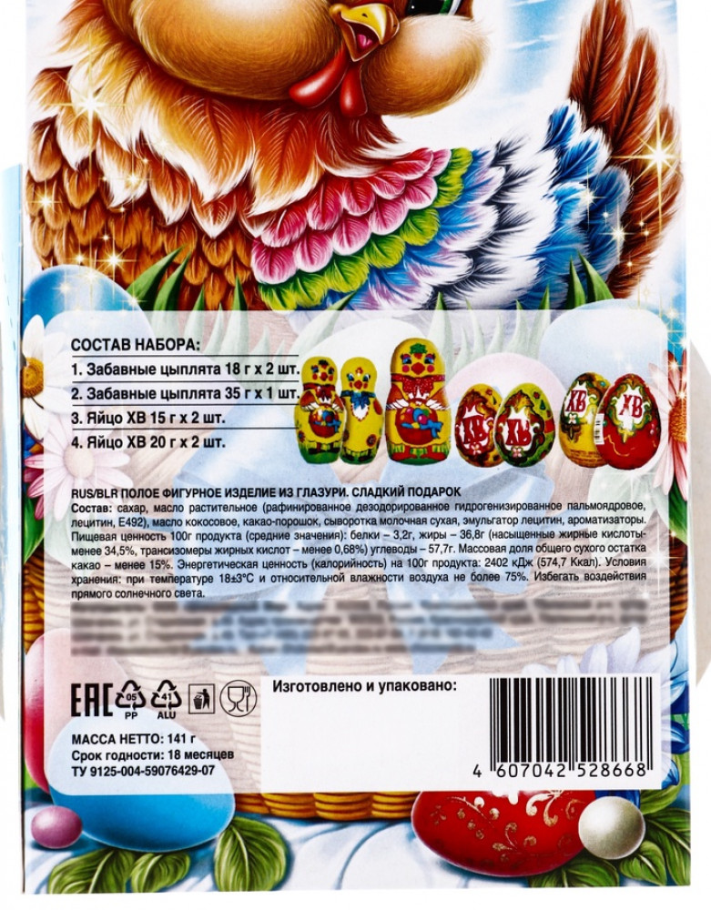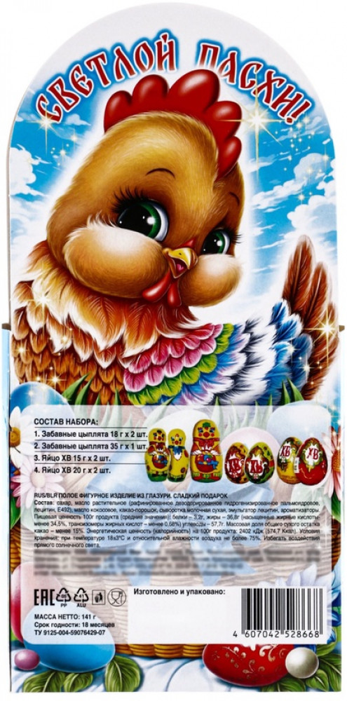 💳 Оплатить за товар можно при получении 🇰🇿 Есть бесплатная доставка по Казахстану от 1 дня 🎁 Копите бонусы с каждой покупки Этот набор — для тех, кто верит, что праздник должен быть щедрым. Вес в 141 грамм говорит о солидном наполнении, которого хватит, чтобы поделиться с семьёй или оставить сладкое воспоминание каждому гостю. Фигурки из кондитерской глазури выглядят празднично и сохраняют традиционный пасхальный колорит. |