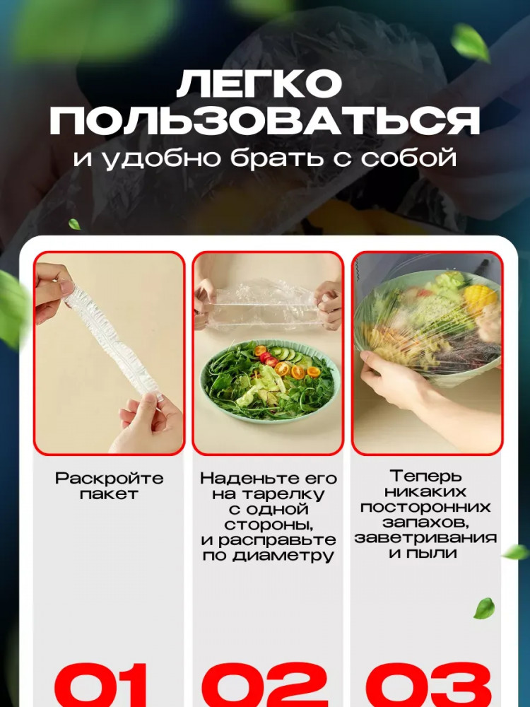 💳 Оплатить за товар можно при получении 🇰🇿 Есть бесплатная доставка по Казахстану от 1 дня 🎁 Копите бонусы с каждой покупки Забудьте о мучениях с пищевой пленкой навсегда! Пакеты на резинке — это гениальное решение для современной хозяйки. Больше не нужно пытаться ровно отрезать пленку или искать подходящую крышку для контейнера. Одно движение — и ваша еда надежно защищена! |