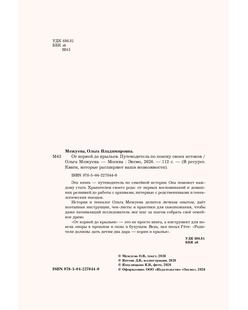 💳 Оплатить за товар можно при получении 🇰🇿 Есть бесплатная доставка по Казахстану от 1 дня 🎁 Копите бонусы с каждой покупки Серия: В ресурсе. Книги, которые расширяют ваши возможности Эта книга — путеводитель по семейной истории. Она поможет познакомиться со своими корнями, открыть интересные факты из жизни предков, а иногда и обрести родственников, связь с которыми была утеряна. «От корней до крыльев» — не просто теория, на страницах этой цветной иллюстрированной книги вы найдёте много материалов, которые можно применить на практике, шаг за шагом становясь Хранителем истории собственной семьи. |