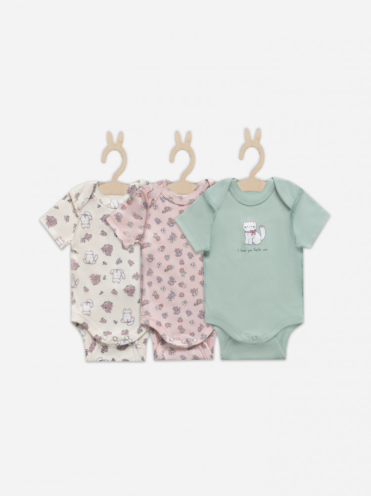 Название цвета: котики с цветами на молочном + мята + цветочки на розовом