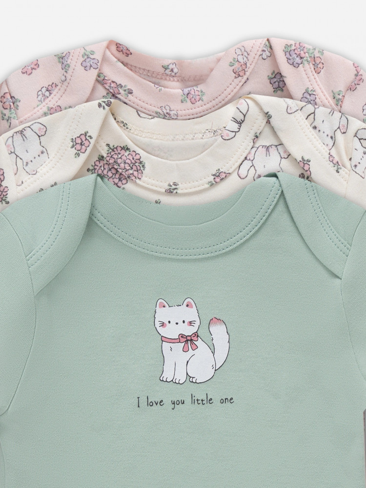 Название цвета: котики с цветами на молочном + мята + цветочки на розовом