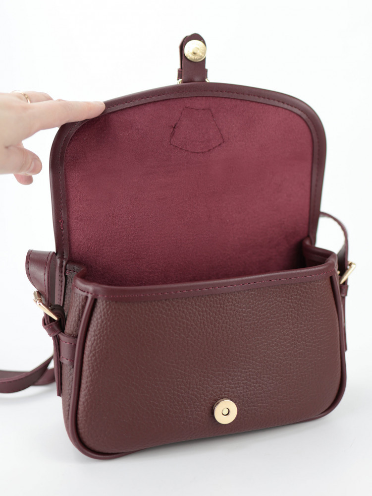 Женская сумка на ремешке бордовая — стильная кросс-боди из эко-кожи. Элегантная женская сумка на ремешке в насыщенном бордовом цвете — универсальный аксессуар на каждый день. Компактная, но вместительная модель идеально подойдет для города, работы, прогулок и свиданий. Классическая форма с клапаном и аккуратной пряжкой придает образу аккуратность и статусность.