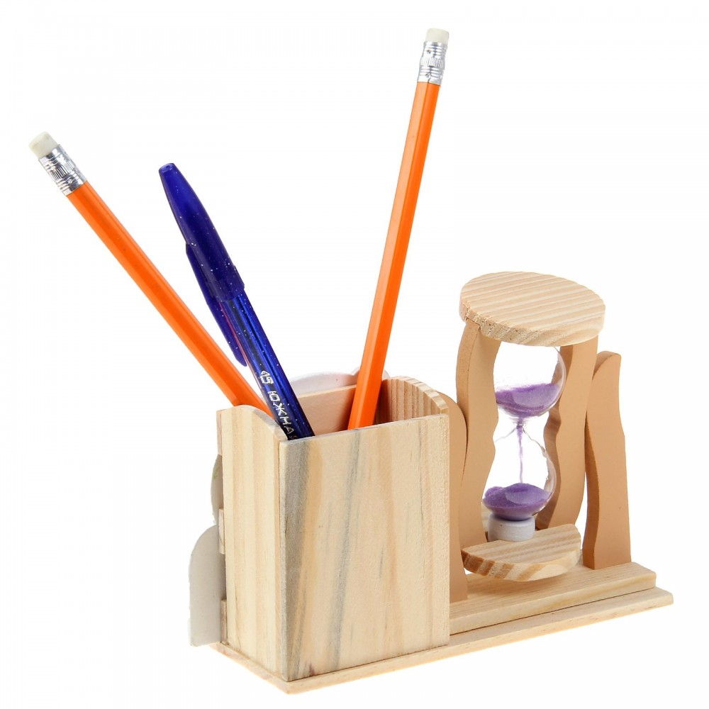 При заказе данного товара, я не обратила внимание на размеры подставки. Стаканчик-карандашница не очень высокий. Часы вращаются хорошо. Сделано из дерева без покрытия. Купила на подарок, надеюсь, что имениннику понравится.