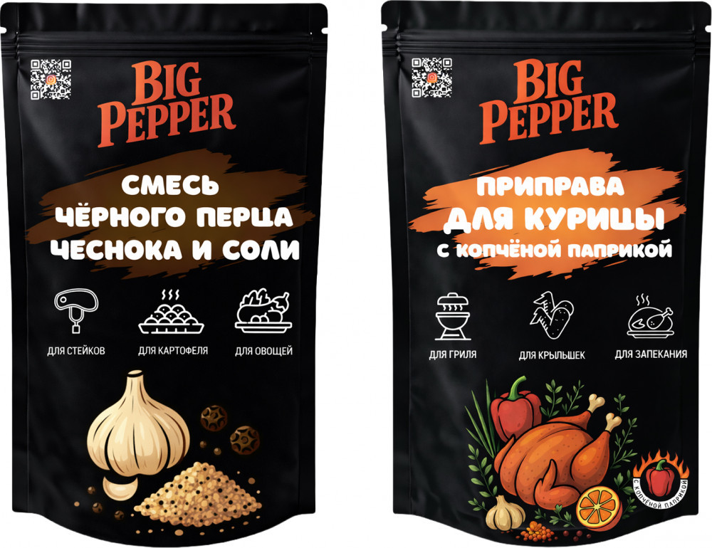 Big Pepper Набор приправ «Для курицы с копчёной паприкой и смесь чёрного перца, чеснока и соли»