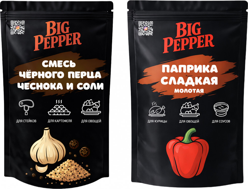 Big Pepper Набор приправ «Паприка сладкая молотая и смесь чёрного перца, чеснока и соли»