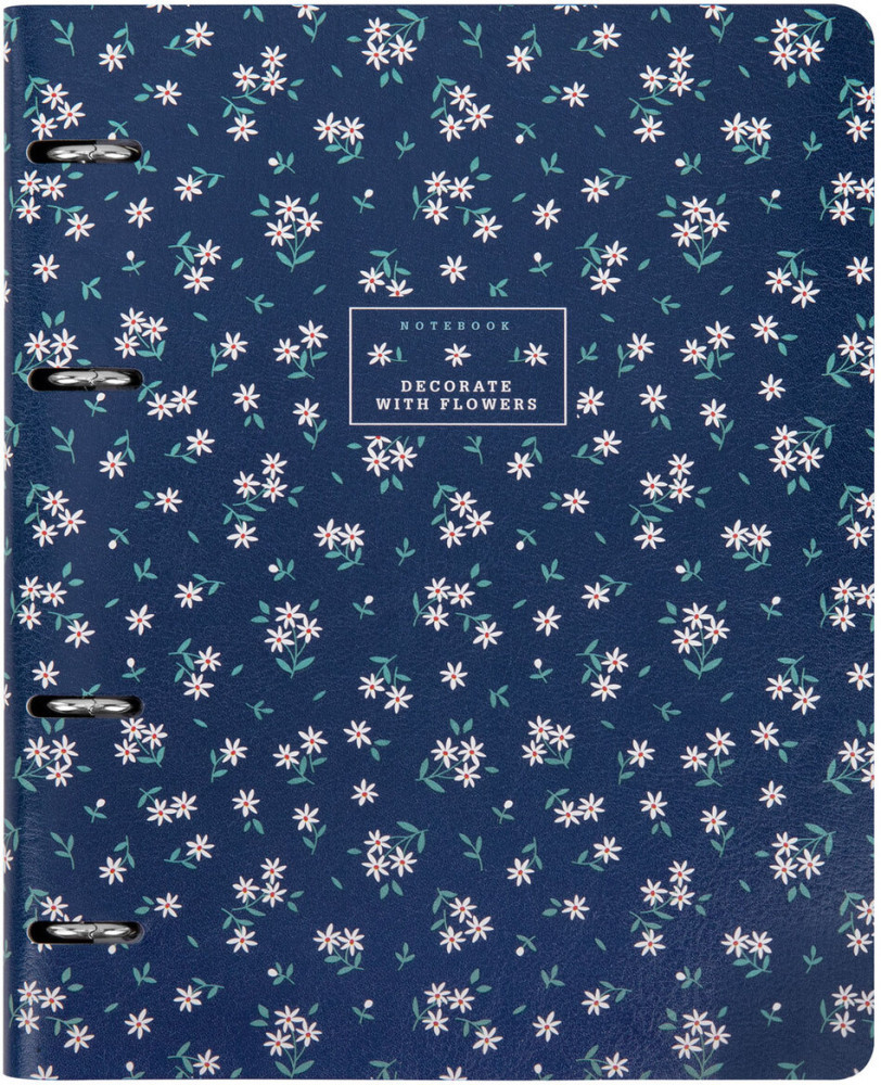 Блок состоит из 120 листов офсетной бумаги белого цвета плотностью 70 г/м2. Кольцевой механизм с 4-мя кольцами позволяет пользоваться сменным блоком в 120 листов. Линовка — клетка с полями. Мягкая интегральная обложка с вырубкой под кольца выполнена из износоустойчивого материала с текстурой под гладкую кожу. Формат А5 удобно носить в рюкзаке или сумке, что позволит брать на учебу или работу всего одну тетрадь с возможностью добавлять и менять листы. Полезный диаметр колец — 20 мм.