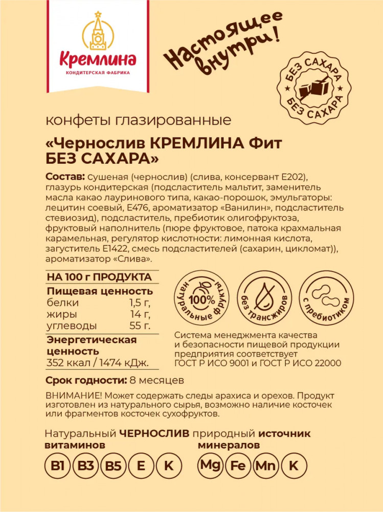 Кремлина Конфеты в шоколаде «Чернослив без сахара»