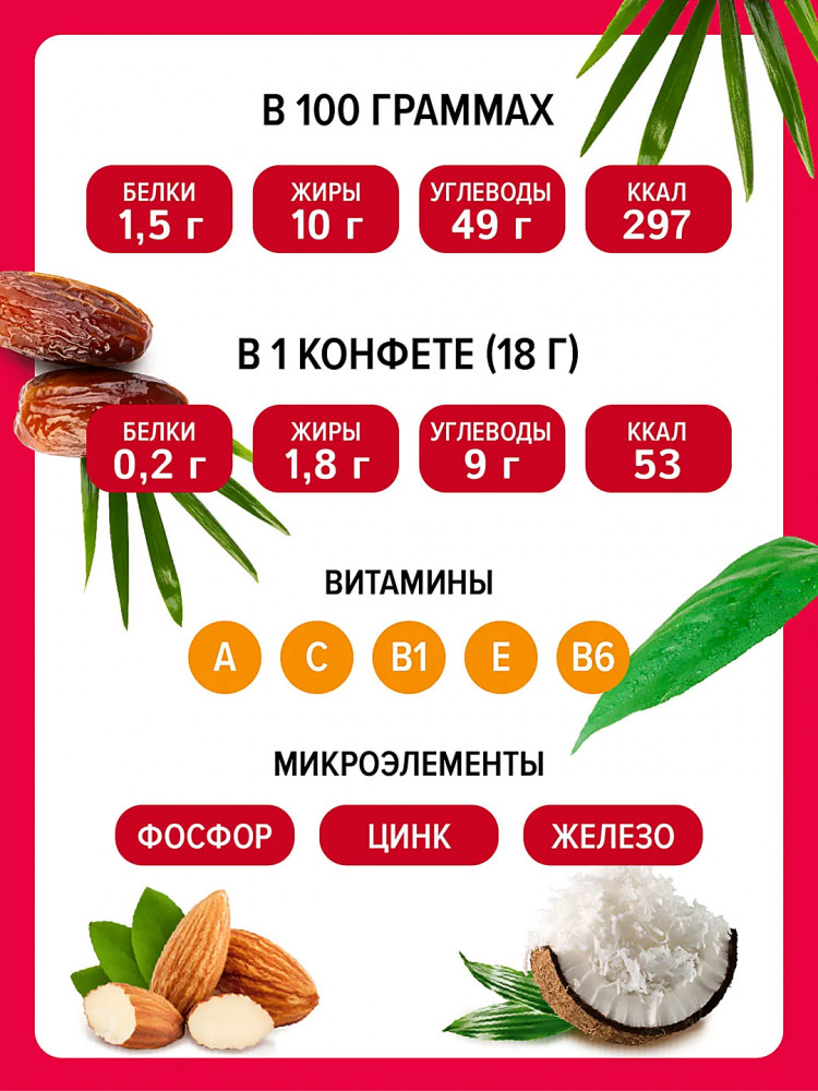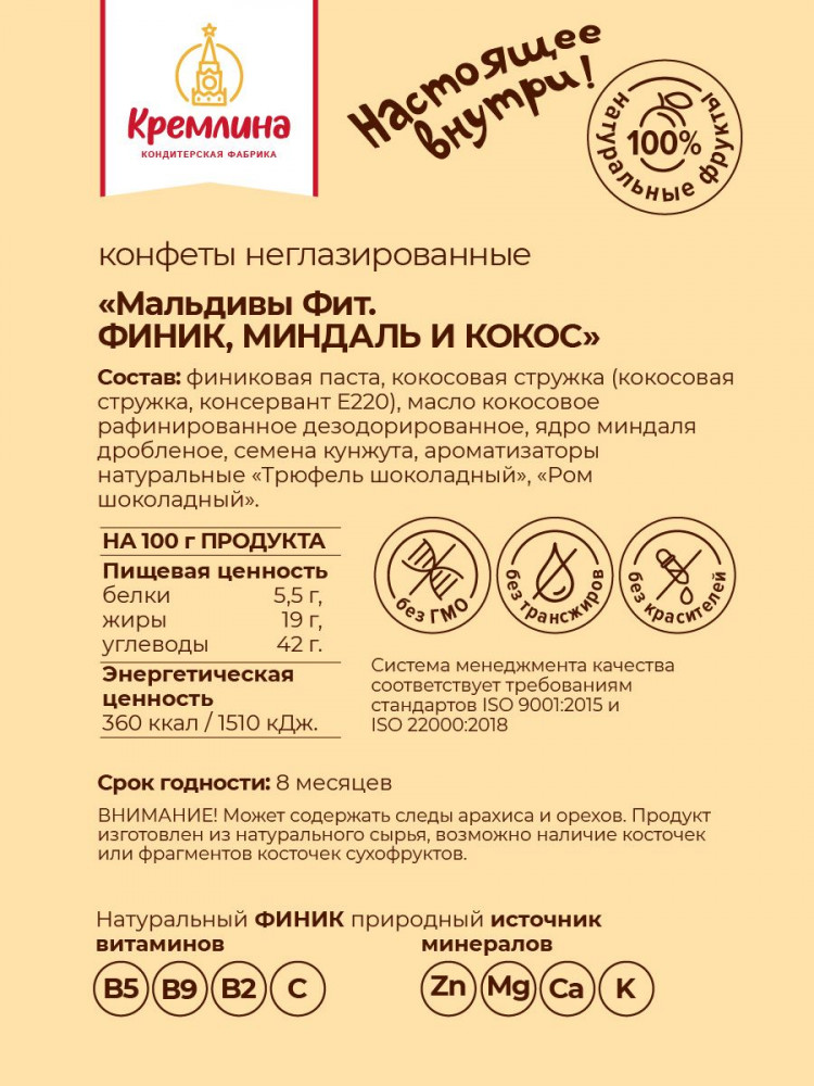 Кремлина Конфеты неглазированные «Мальдивы Fit. Финик, миндаль и кокос»