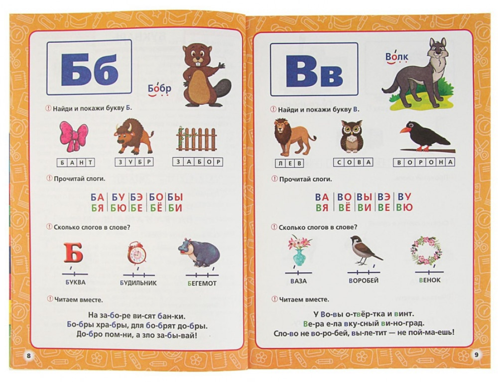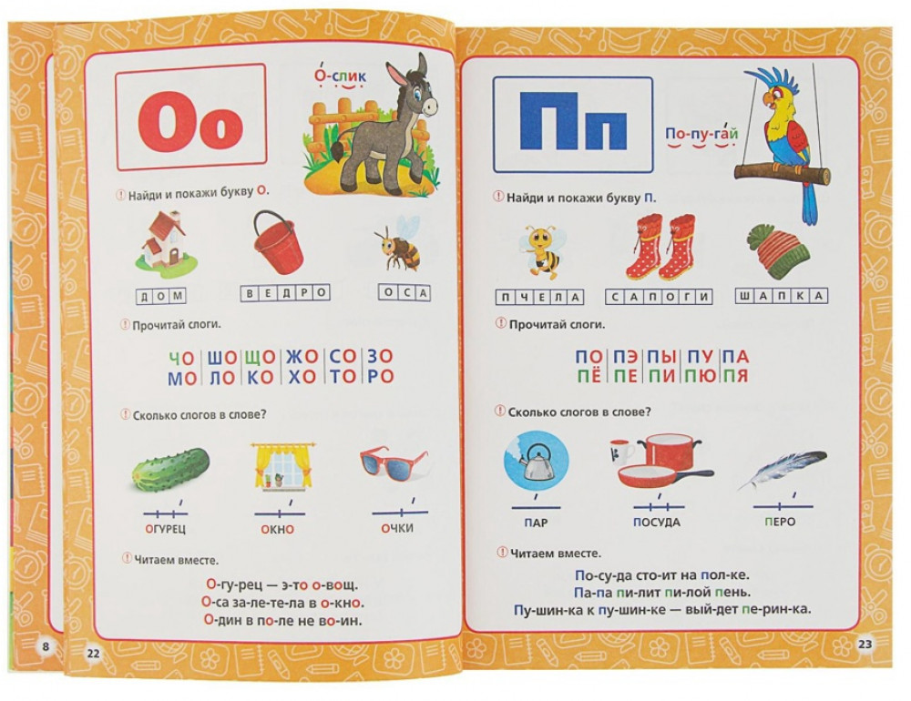 Задания охватывают чтение по слогам, основы математики, изучение окружающего мира и многое другое.