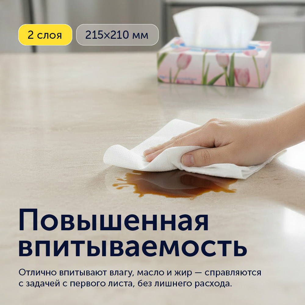 💳 Оплатить за товар можно при получении 🇰🇿 Есть бесплатная доставка по Казахстану от 1 дня 🎁 Копите бонусы с каждой покупки Бумажные салфетки Flip Home изготовлены из 100% первичной целлюлозы — мягкие, безопасные и комфортные для кожи. Двухслойная структура и увеличенный размер 215×210 мм обеспечивают хорошую впитываемость влаги, масла и жира. Подходят для дома, кухни, офиса и использования в дороге. Новая весенняя упаковка с нежным цветочным дизайном освежает интерьер и создаёт лёгкое, уютное настроение. Коробка обеспечивает гигиеничное хранение — салфетки всегда под рукой и гармонично смотрятся в любом пространстве. |