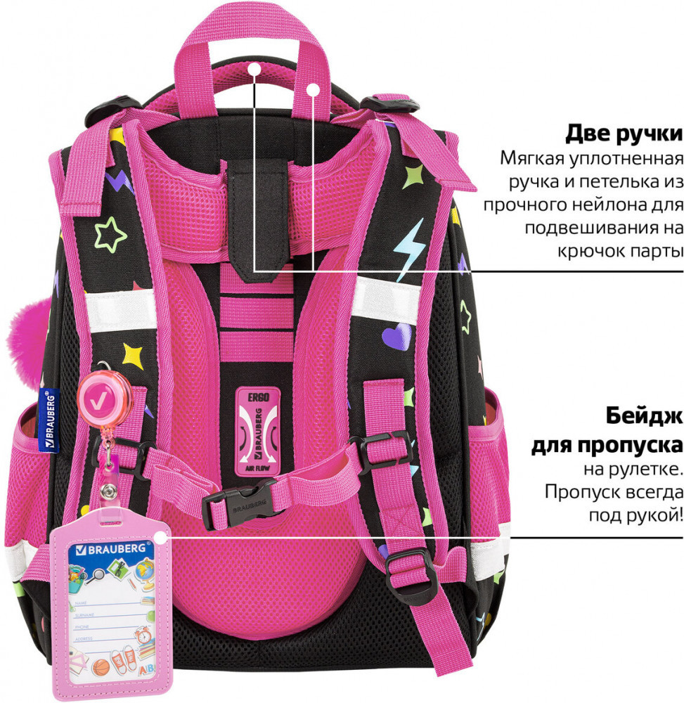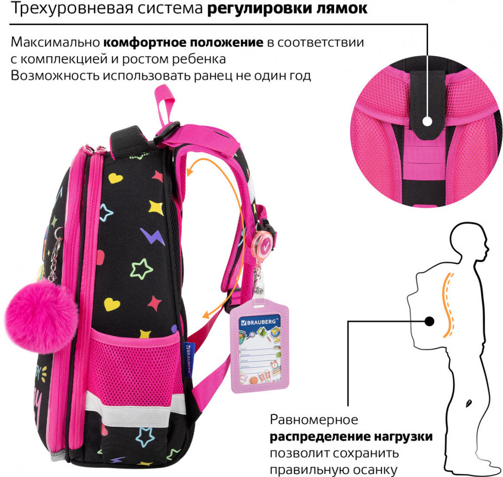 Ранцы BRAUBERG PREMIUM протестированы НИИ гигиены и охраны здоровья детей и подростков ФГАУ «Национальный медицинский исследовательский центр здоровья детей». В рамках проведенных исследований* было установлено, что конструкции и материалы ученических ранцев соответствуют современным эргономическим требованиям и способствуют формированию здоровой осанки у школьников.