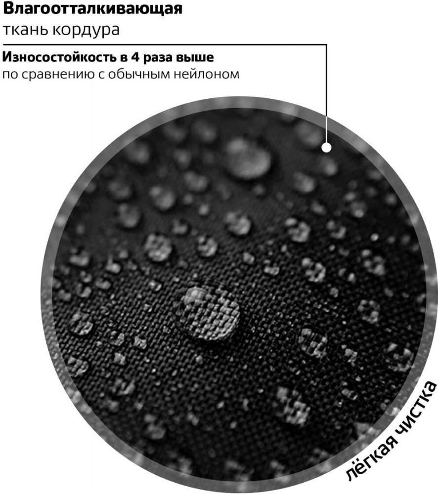 Ранец покрыт высококачественной влагоотталкивающей нейлоновой тканью — кордура, в которой за счёт особой структуры нити достигнута четырёхкратная стойкость к истиранию по сравнению с обычным нейлоном. Кроме того, эта ткань легко чистится.