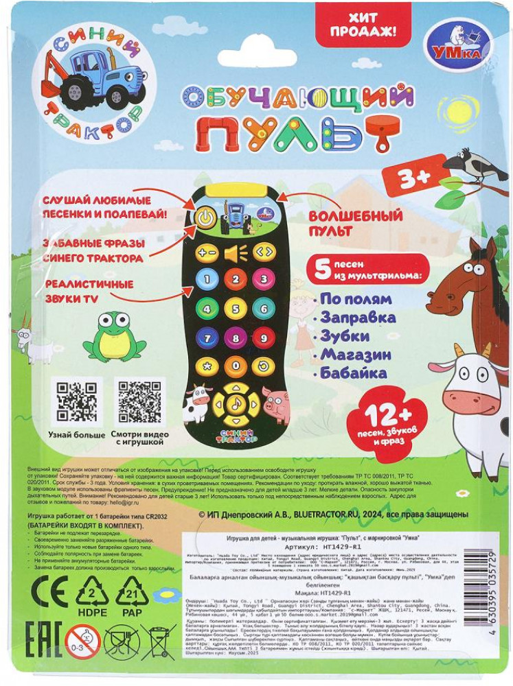 💳 Оплатить за товар можно при получении 🇰🇿 Есть бесплатная доставка по Казахстану от 1 дня 🎁 Копите бонусы с каждой покупки Серия: Синий трактор Обучающий пульт «Синий Трактор» ТМ «УМка» непременно понравится маленьким поклонникам мультсериала про приключения весёлого Трактора. Ребёнку непременно понравится эта занимательная игрушка, выполненная в виде пульта от телевизора. Он с удовольствием будет нажимать на кнопочки и слушать весёлые песенки, забавные фразы и звуки. Кроме того, в игровой форме он с лёгкостью выучит цифры. Компактную игрушку удобно повсюду брать с собой. |