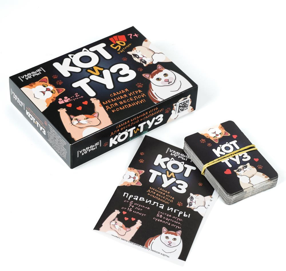 💳 Оплатить за товар можно при получении 🇰🇿 Есть бесплатная доставка по Казахстану от 1 дня 🎁 Копите бонусы с каждой покупки Карточная игра «Кот и Туз» ТМ «Умные игры» — самая мемная игра для весёлой компании. Мяу! Перед вами весёлая и быстрая карточная игра для любой компании. Интересно будет и детям, и взрослым — дома, на вечеринке или в дороге. Правила очень просты: постарайтесь первыми избавиться от карт, попутно создав для своих соперников неприятности. Да-да, придётся вести себя, как наглый котяра. Но кто не выпускает когти — тот не кричит «Туз»! |