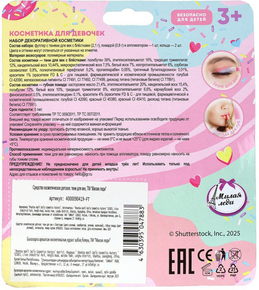 Тени для век с блёстками: полибутен 39%, этилгексилпальмитат 16%, тридецил тримеллитат