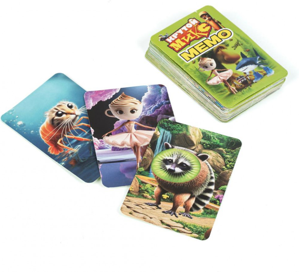 Карточная игра — мемо «Крутой микс» ТМ «Умные игры» — отличный вариант, чтобы весело и с пользой провести время. Мемо — увлекательная игра для всей семьи! С её помощью ребёнок научится сопоставлять и сравнивать изображения на карточках, запоминать их расположение.