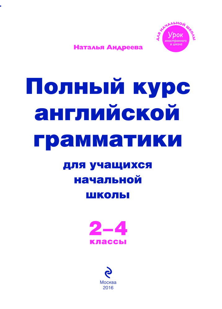 Полный курс английской грамматики для учащихся начальной школы. 2-4 классы. ФГОСВ данный момент этот товар отсутствует в продаже. Возможно, у нас найдется аналогичный или похожий товар здесь. Серия: Урок иностранного в школе Цель данного учебного пособия — помочь младшим школьникам освоить те темы английской грамматики, которые изучаются во 2–4 классах в рамках школьной программы в общеобразовательных учреждениях любого типа. Оно используется для тренировки и активизации грамматического материала вне зависимости от базового учебника, по которому ведется обучение в школе. Соответствие школьной программе, простота, наглядность и доступность изложения материала, большое количество и разнообразие упражнений для практики, наличие заданий разной степени сложности, соответствие возрастным особенностям и возможностям учащихся делают пособие незаменимым при изучении английского языка в начальной школе. |