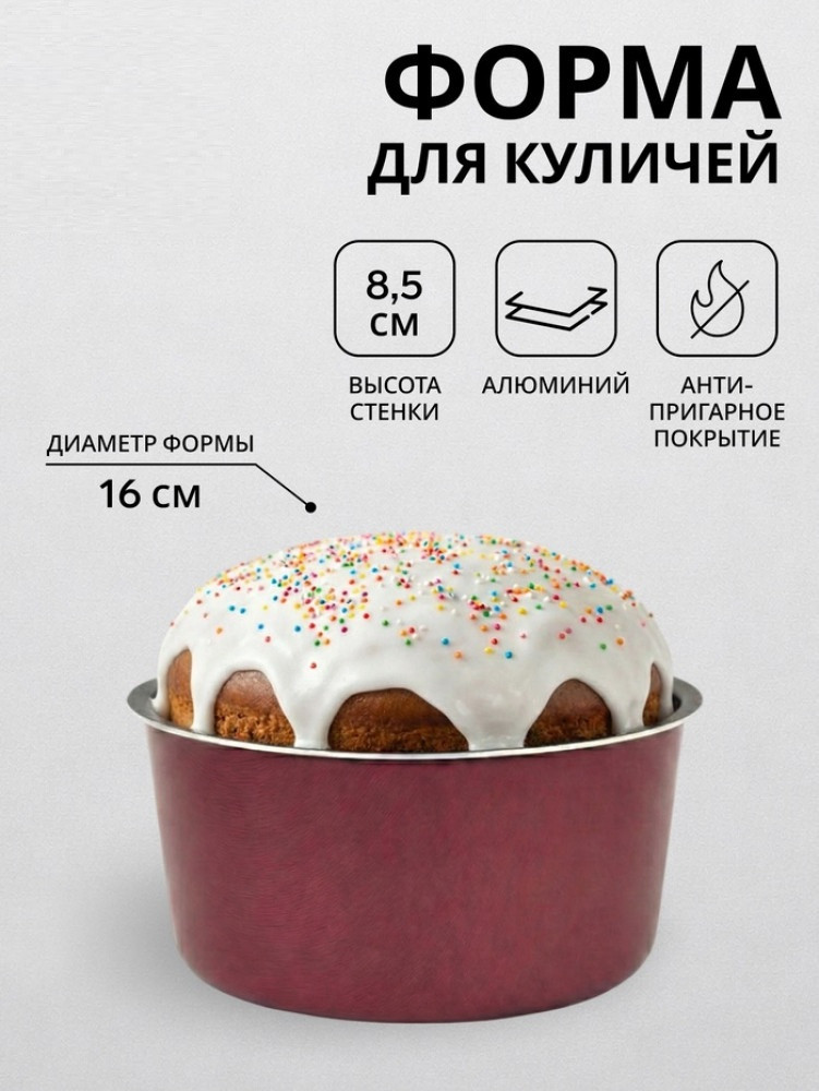 💳 Оплатить за товар можно при получении 🇰🇿 Есть бесплатная доставка по Казахстану от 1 дня 🎁 Копите бонусы с каждой покупки Форма для куличей диаметром 16 см — надёжный инструмент для объёмной праздничной выпечки. Антипригарное покрытие для лёгкого извлечения выпечки и простого ухода. Универсальный диаметр 16 см — оптимальный размер для традиционного кулича. Усиленная конструкция из алюминия с толщиной стенки 1.2 мм для идеального пропекания. Стильный бордовый цвет, который создаёт праздничное настроение на кухне. Универсальная круглая форма подходит для любых праздников и повседневной выпечки. Форма разработана специально для пасхальных куличей: её пропорции помогают тесту подняться, а не растечься. Вы получите аккуратные, высокие изделия с мягким мякишем и золотистой корочкой. После праздника их можно использовать для выпечки кексов, хлеба или запеканок, делая эту посуду полезной в хозяйстве круглый год. |